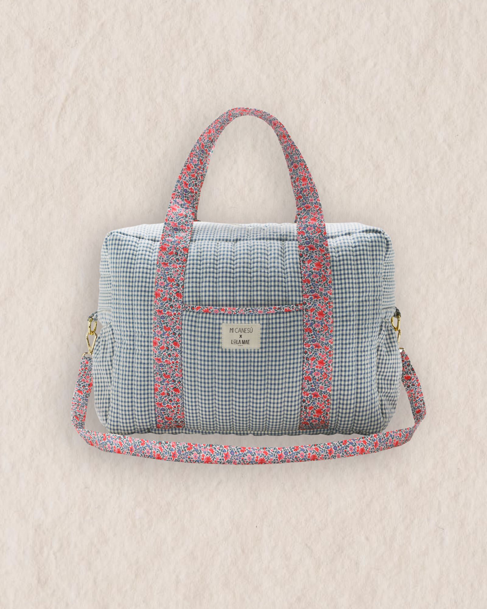 Bolsa de Viaje en Vichy Azul Denim y Liberty Mini Clarissa. Exclusivo Mi Canesú.
