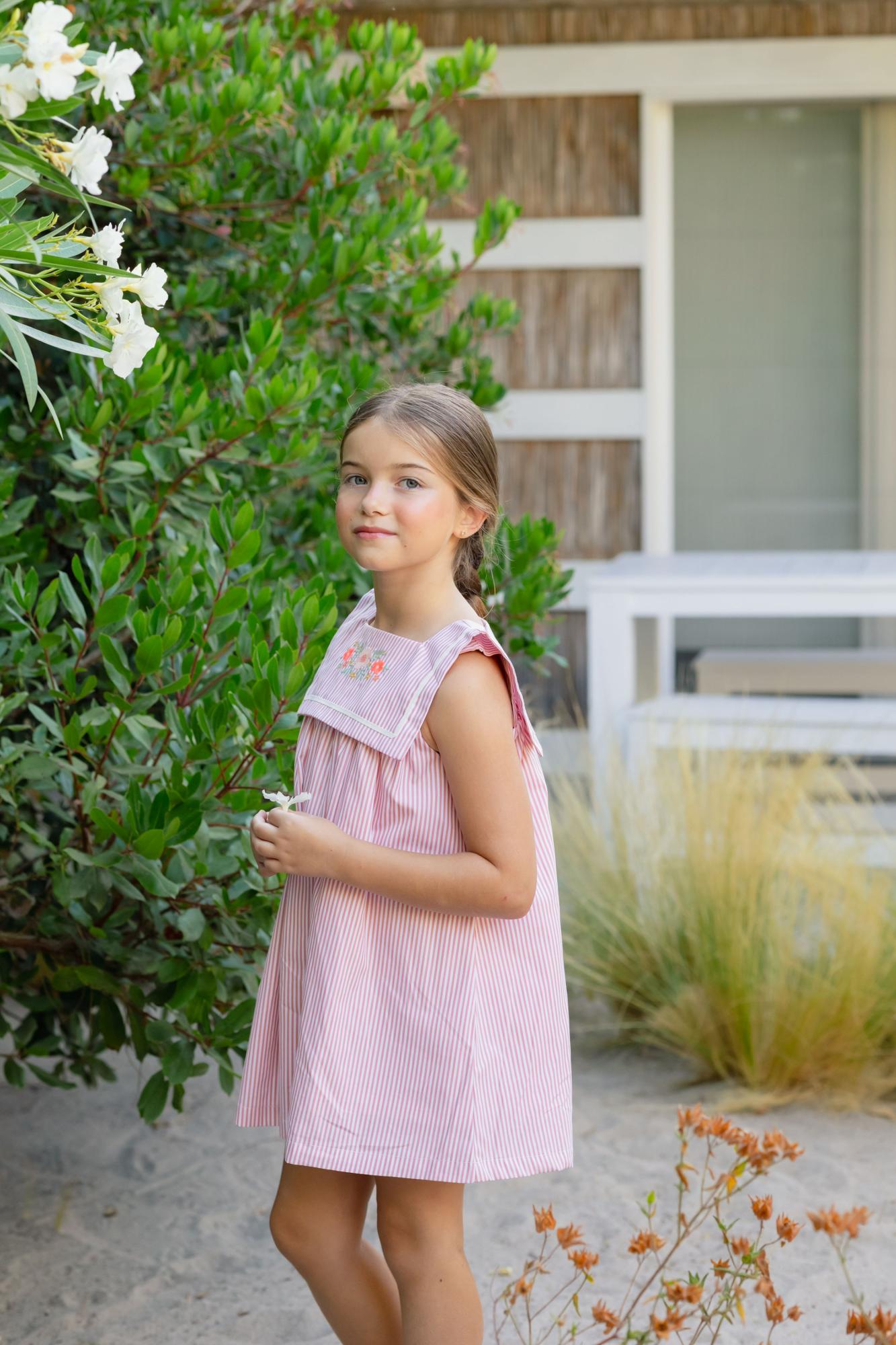LojaVestido Bordado Marinheiro Riscado Pink